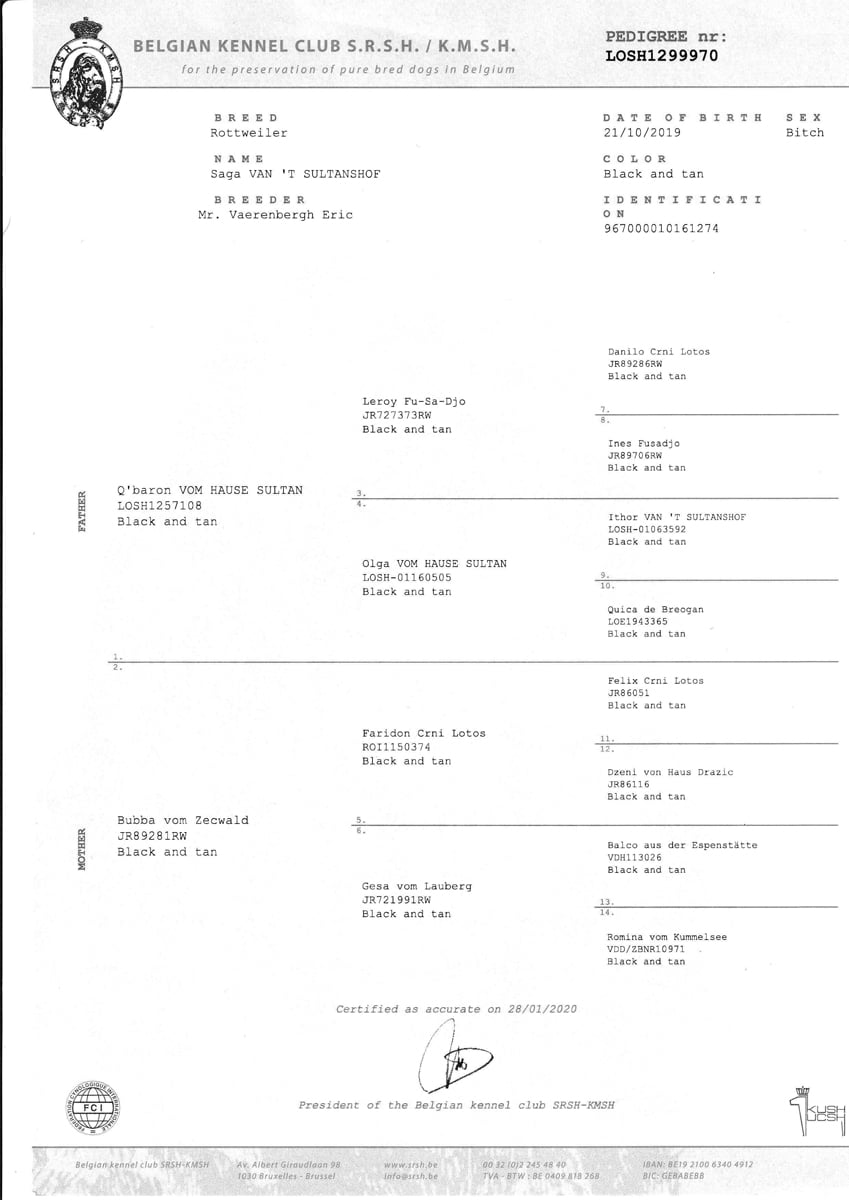 DOB: 21/10/2019Vader - Sire:Q'Baron vom Hause SultanMoeder - Dam:Bubba vom ZecwaldHD:A ED:0/0 SD:0/0 JLPP:N/N